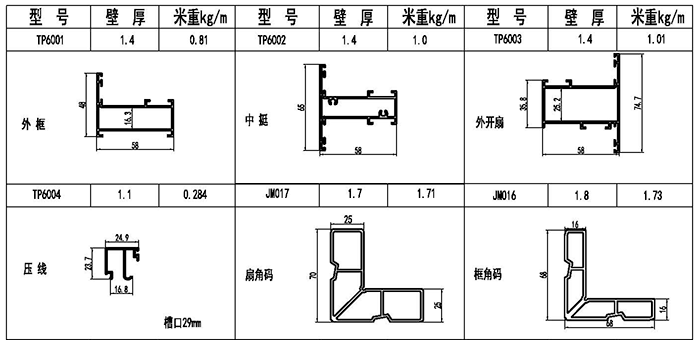 TP60系列外開窗型材圖