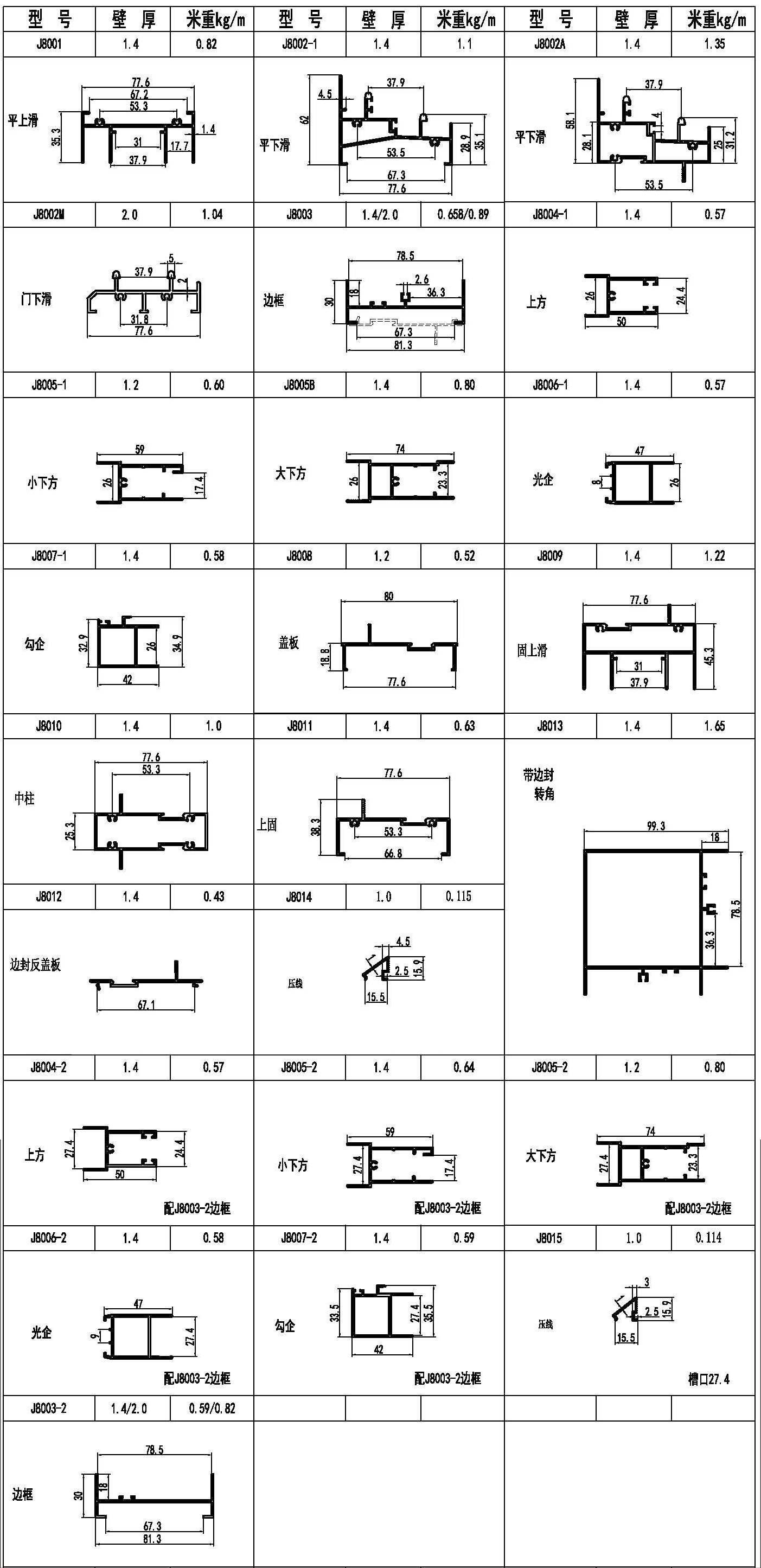 J80系列推拉窗型材圖