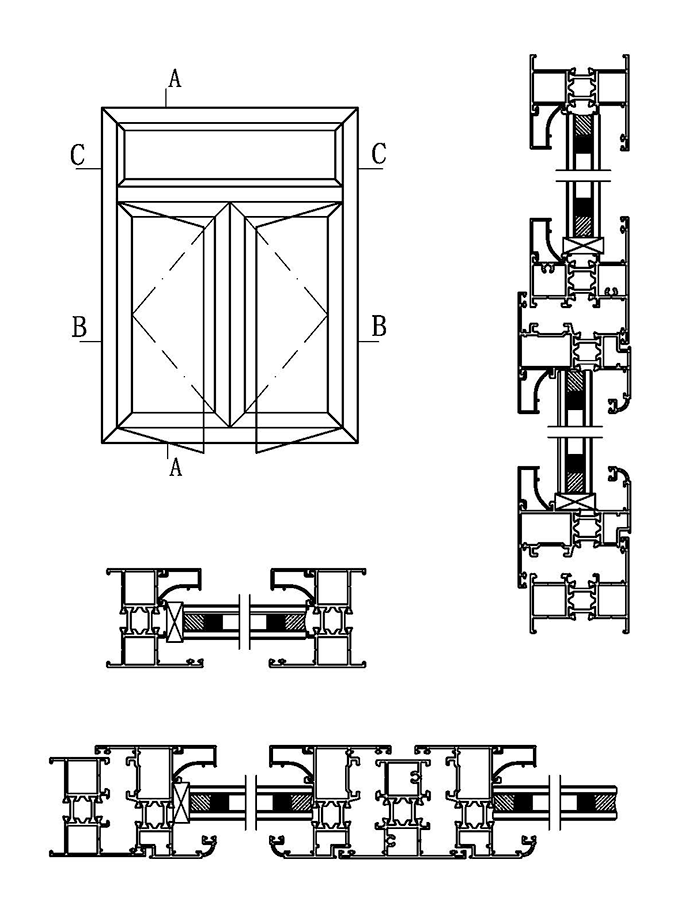 TC55系列穿條節(jié)能平開窗組裝圖