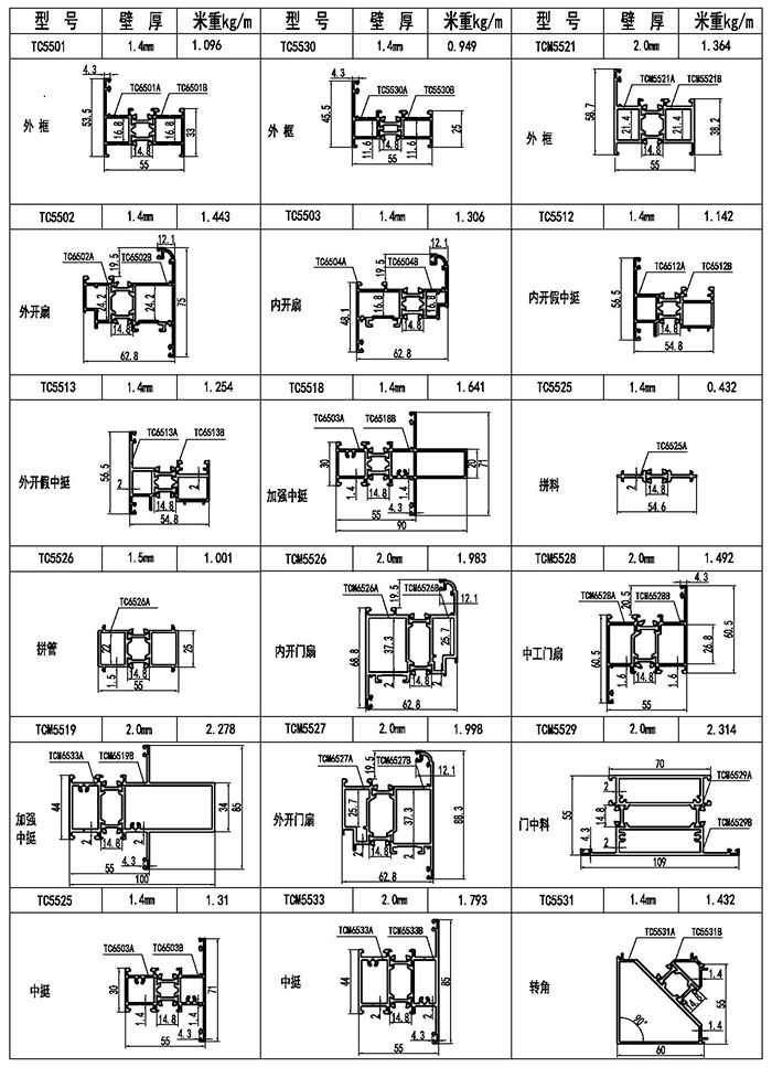 TC55系列穿條節(jié)能平開窗型材圖