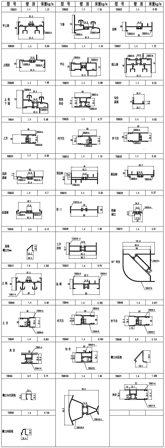 TC85系列穿條節能推拉窗型材圖